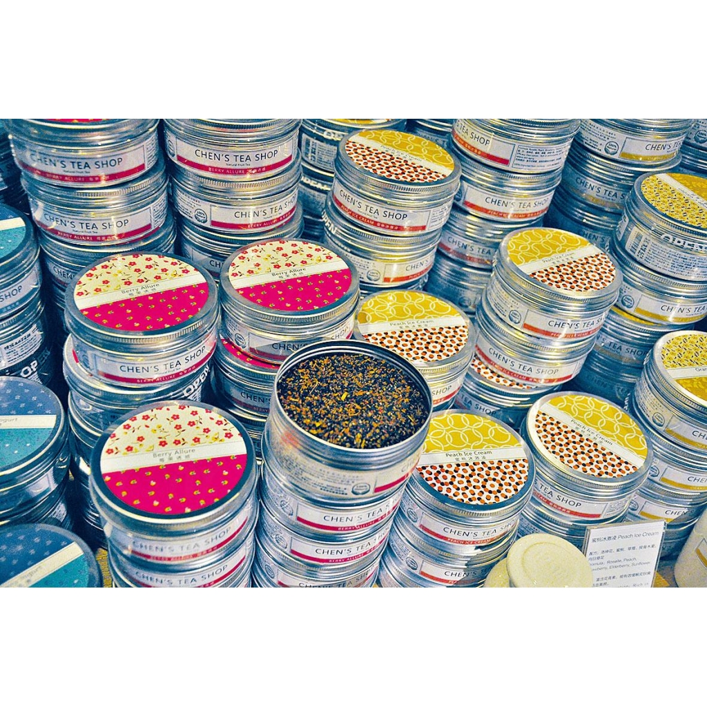 「陳罐西式茶貨舖」以翠綠色為主色,該店的字體是台灣式的「手繪」。店內專售茶葉,罐子的設計鮮艷而精緻,從知名的大紅袍到帶有煙熏香氣的正山小種,或具有蘭花及栗子香氣的「水仙」等,並以玻璃櫃陳示着,典雅得體。除了傳統口味,還有莓果、蜜桃等味的花茶,有的「減肥美肌」,而為免花多眼亂,店員都有講解推介,在此買手信也是好選擇。