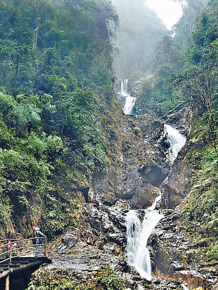 距公園西大門的猴王寨有一連串的瀑布群,沿谷中棧道就可遍賞。猴王寨是個小山谷,因常有野生短尾猴出沒而得名。這裏背靠原始森林,兩旁危崖峭壁,中間有小溪流淌,穿插在黃色的岩石,溪中聚成碧綠色的潭子。步道只有約1公里長,盡頭是一道九層瀑布。