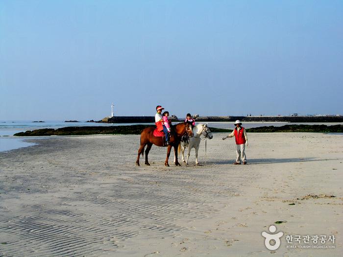 海水浴場內有更衣室、淋浴室、休憩處、飲水台、洗手間等各種完善便利設施。附近有茂密的松林,可享受露營特別的是海水浴場正面望見的飛揚島與清澈乾淨的海水融合而成的美景,令人讚嘆不已。另外,在這裡也可以欣賞到夕陽暮色,感受天空的變化。