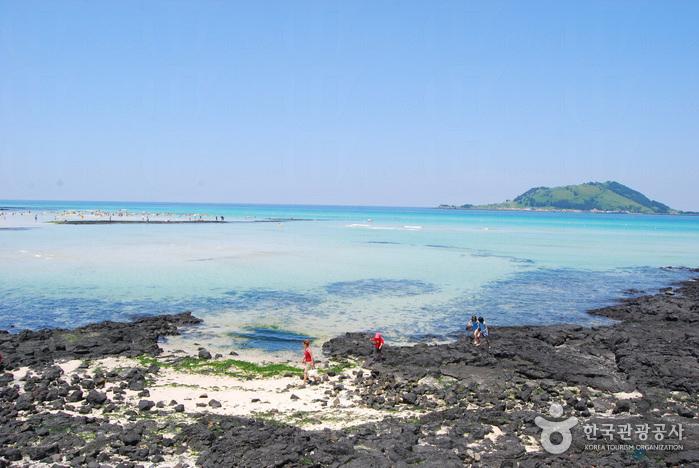 挾才海水浴場 (Hyeopjae Beach) 鄰近濟州市西邊32公里處的翰林公園,西南邊海岸與金陵海水浴場相連,居民將兩個海水浴場合稱為挾才海水浴場。沙灘長約200公尺、寬60公尺、平均水深1.2公尺、傾斜度3-8度,低淺的水深與微緩的斜度,非常適合一家大小來訪。