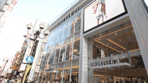 看到固力果先生霓虹廣告牌後,往左轉入道頓堀就可看到樓高三層,關西首間,同時也是日本最大的 Forever 21。
