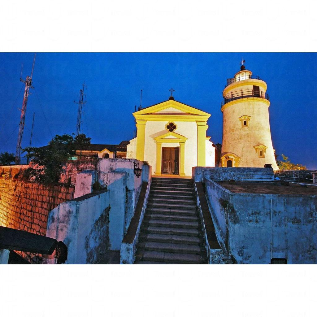 東望洋炮台位於東望洋山(松山)之巔,是澳門半島的最高點,建於 1637 至 1638 年間,奉獻給雪地聖母。該地段歷來被列作軍事區。聖母雪地殿教堂主色為白色,帶著黃色的線條點綴,具 17 世紀葡萄牙修院的建築風格。