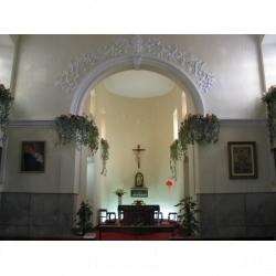 內部除正堂外還有左右兩間小室。小室之內存放了多件宗教聖物,其中的聖嬰像,據聞普是意大利某聖堂裡供奉的聖物。值得一提的,是掛在側堂牆壁上的兩幅分別畫有耶穌及一個中國傳統女坤的大畫像,那位女神樣貌端莊,懷抱小孩,實際上是一個中國化的聖母像,是中西文化交融的又一佐證。