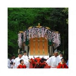 本殿建於八世紀年,其他社殿建立於 1628 年。是平安時期以前最古老的神社之一,也是山城國首屈一指的神社。神社內部稱為「紮之森」,被列為國家歷史遺跡,其中 2 棟本殿和 53 棟則是重要文化財產。每年 5 月 15 日神社都會舉行的葵祭中會展出優雅的王朝畫卷,與時代祭和祇園祭並列京都三大祭。