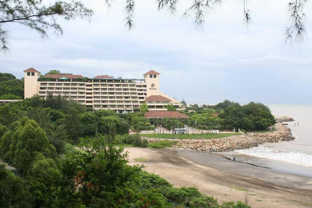 採用澳葡式建築風格的澳門威斯汀度假酒店(Westin Resort Macau)曾被《國家地理雜誌》列為全中國最佳度假酒店之一,酒店樓高八層,座落在風景如畫的黑沙海灘,俯瞰中國南海,其沿山坡以漸層階梯式建築興建,把設有寬敞陽台的客房及標準 18 洞高爾夫球場的宏偉氣勢表露無遺,是天然環境與現代科技的完美配合。