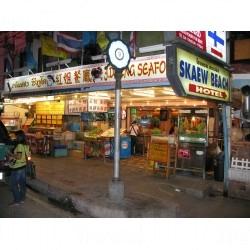 店員裡有中國人,溝通方面,親切有禮。海鮮以燒烤類最惹味,其他小菜水準亦不俗。 店內裝修簡單,絕不是食裝修,故價錢亦較實惠,烤司蛤約150銖,蝦醬炒通菜100銖-180銖,4隻燒大河蝦售480銖,店內有乾燕窩、乾鱷魚肉、鱷魚旦售賣,店鋪也有代辦包車到曼谷,可向店員查詢。