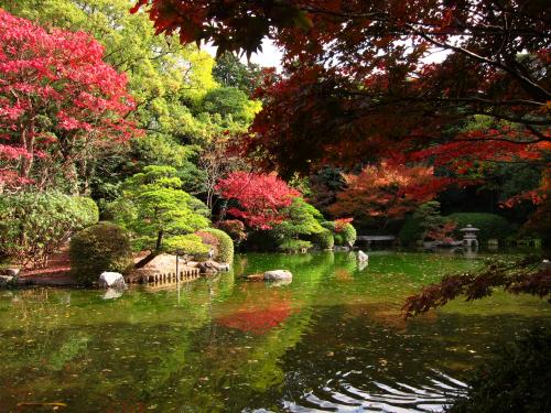 詳細介紹 友泉亭公園屬於池泉回遊式日本庭園,六代福岡藩主黑田繼高在舊早良郡田島村所建設的別墅, 是日本有名的建築物。在這裡,秋天還可以欣賞滿園的楓紅。你大可以沏一杯綠茶,吃一件和果子,好好地享受這寂靜的空間。