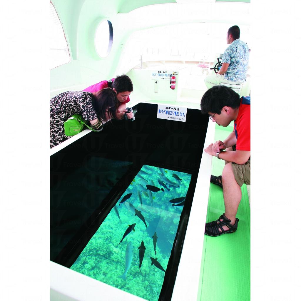 在 Busena Terrace Beach Resort 附近,就可找到這隻模仿鯨魚造型的搶眼玻璃船。沖繩島的珊瑚礁地形發達,故海中動植物的繁殖均十分旺盛,遊客可買麵包餵魚,悠然地坐在船上,從透明船底觀賞色所繽紛的海底世界,短短 20 分鐘的巡遊,讓你與海洋靠得更近。