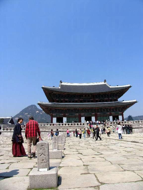 看見景福宮便覺故宮的偉大,宮內是矮矮的牆,皇帝的宮殿樣中國的大宅,但還是很漂亮,宮中沒城池,只有小橋流水和韓式建築。在宮中有韓國的歷史介紹,其中說明了韓國給日本攻打了很多次,甚至公主給殺害等歷史。這也有很多韓國人在此拍結婚照片。