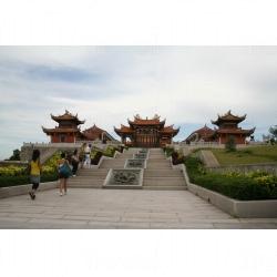 作為整個文化村主體的天后宮,按照閩南古建築風格設計,並且參照了媽祖廟傳統的規格布局。在廟宇中軸之上便是祭壇、媽祖大殿,以及兩層高的媽祖梳妝閣等,梳妝樓是媽祖日常起居之所,是天后宮建築群重要組成部分,亦是大型媽祖宮廟佈局必須建築,依閩南古建築風格建,為兩層仿古樓閣,二樓將安放觀音神像,供香客朝拜。