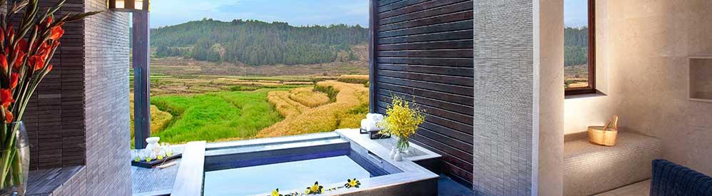 騰沖悅椿溫泉村坐落於雲南省西部火山區騰沖,從騰沖機場車30分鐘即可抵達溫泉村,而到周邊著名的自然景點如騰沖濕地等只需15分鐘車程。37間溫泉湯屋及湯院均配有獨立的溫泉泡池。溫泉村內悅椿溫泉中心提供有六大不同主題和護療功能的43個室內外溫泉湯池,令住客舒緩身心,體驗完美溫泉泡湯。
