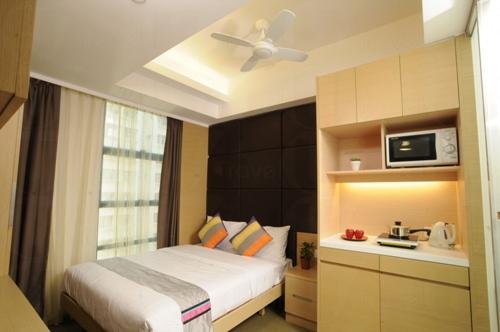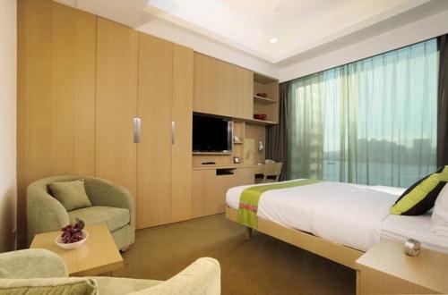 銅鑼閣 精品式服務住宅 共有106間客房,佈置淡雅舒適,設備完善,為住客提供一個溫暖的住所。透過房內的落地玻璃大窗戶,更可飽覽維多利亞港的迷人景色。