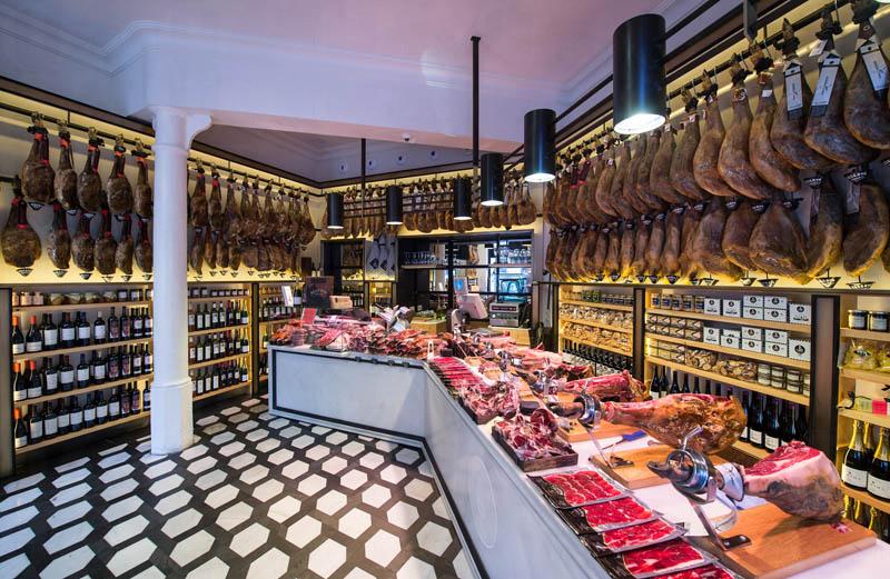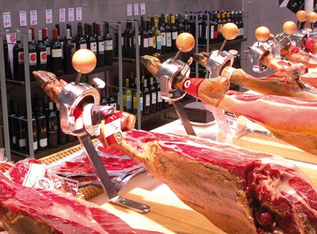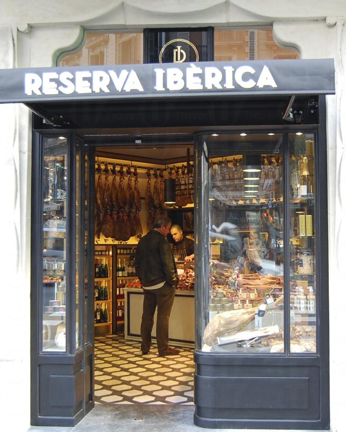 Reserva Ibérica 和大廠不同,不重產量,注重品質,所以店中搜集來至不同區域,不同醃製方法的細牌子風乾火腿。火腿全部是西班牙最著名的黑毛豬,有售前腿(Paleta)及後腿(Jamon),全部脂肪分佈均勻,味濃香甜,再加上店員精湛的刀功,火腿有如雪花一般融在口中,回味無窮。