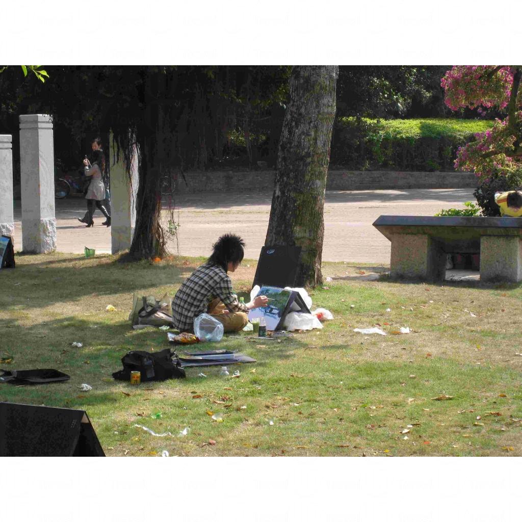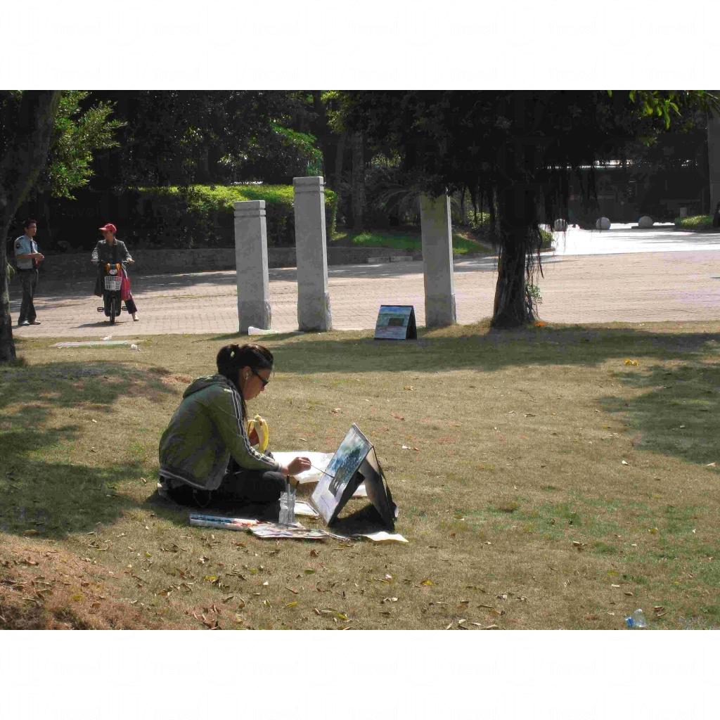 踏進公園,眼前所見是一個直徑大約 200 米的大草地,右邊聚集了一班藝術家,有的三五成群,有的獨個兒寫生。另外,畢架山公園亦有條登山路綫,供旅客登上約 400 米高的山峰上,眺深圳市。