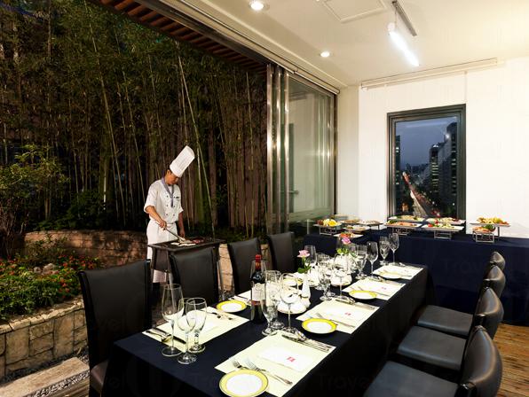 餐飲方面,酒店設有四間餐廳、咖啡廳及酒吧,包括為La Table、Le Bar、Private 和Le café。