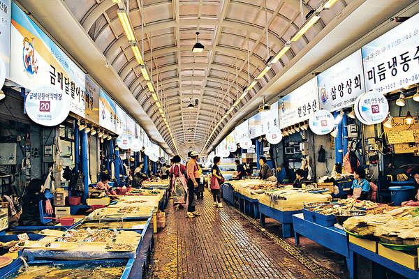 濟州市的東門水產市場,不算大,傍晚到來,燈光通明,檔販們忙得不可開交,人來人往,好不熱鬧。東門水產市場的人確是比釜山札嘎其市場的魚販友善,至少我們舉機拍攝也沒有怒目而視、惡言相向。細看攤檔上的海鮮,帶魚、比目魚、鯛魚、石斑,還有來到必吃的鮑魚跟八爪魚……獨欠蟹跟生蠔,部分還在缸內游動,超新鮮。