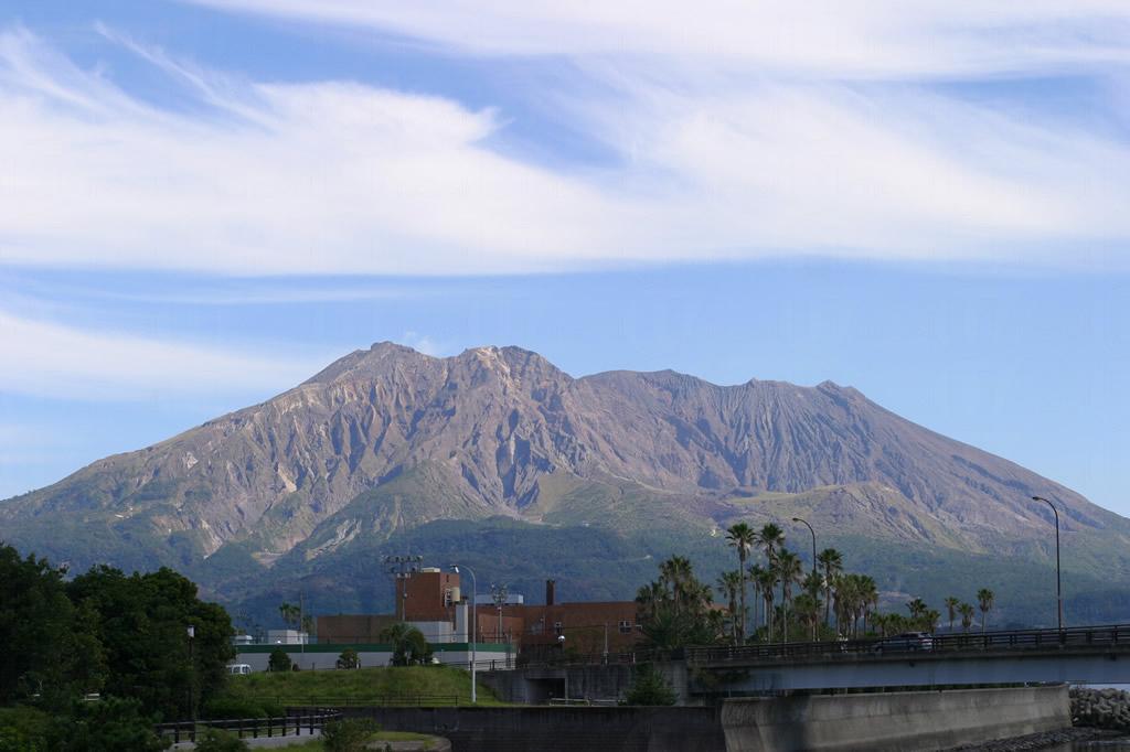 櫻島火山是日本著名的海上活火山,火山活動仿然活躍,是鹿兒島很有名的地標。本來是個孤島,不過在歷史上經歷了多次爆發,使它與大隅半島連接起來。