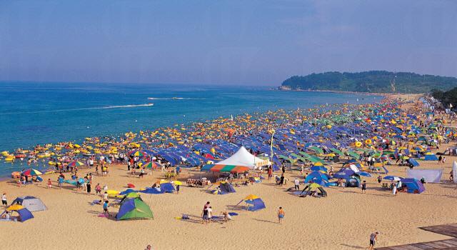 束草海水浴場 (Hyeopjae Beach) 鄰近著名的雪嶽山和尺山温泉,沙灘長約450米、寬約60米、平均水深1米,水質清澈,而且水淺,吸引許多家庭專程來此避暑度假。