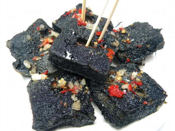 黑色經典臭豆腐名副其實是黑色,原因是在滷豆腐時加入墨魚汁,這種食法盛行於湖南長沙,台灣的黑豆腐亦是同樣的做法。