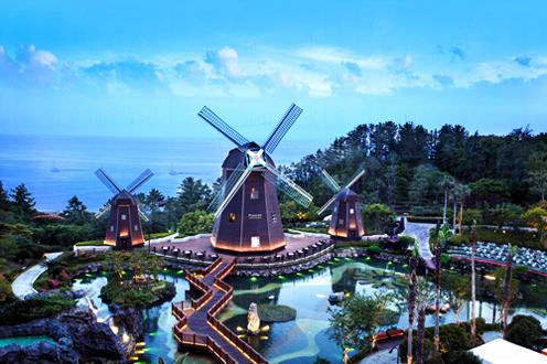 樂天荷蘭風車城位於樂天酒店的範圍內,由酒店一樓的花園廣場一直走,穿過酒店戶外的BUFFET空間就到。因其模仿荷蘭的風車而聞名,也是韓戲《ALL IN》的拍攝場地。
