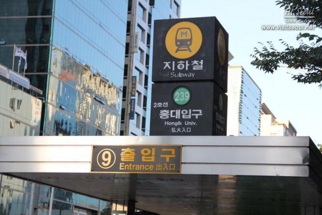 起點: 地鐵2號線弘大入口站9號出口