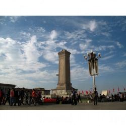 人民英雄紀念碑位於北京天安門廣場中心,建於 1958 年,是為紀念 1840 年至 1949 年間為中國革命捐軀的烈士而建。紀念碑呈方形,高約 38 公尺,以玉石雕成,上刻有 8 幅描述中國革命事迹的浮雕,分別以虎門銷煙、金田起義、武昌起義、五四運動、五卅運動、南昌起義、抗日遊擊戰爭、渡江戰役為主題。碑身正面 (北面) 刻有毛澤東親題「人民英雄永垂不朽」金漆大字等,肅穆莊嚴,雄偉壯觀。