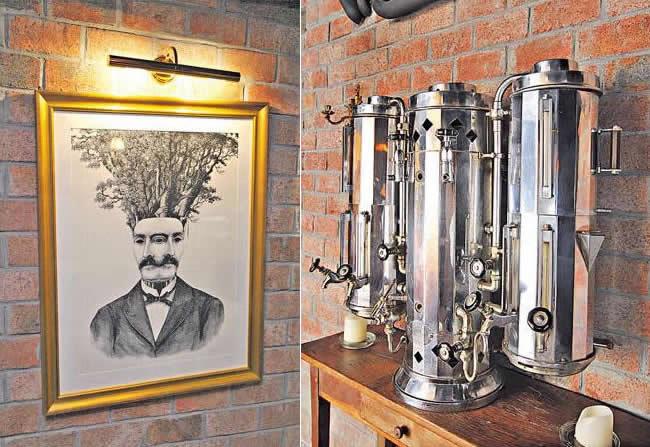 中環的 Stockton 酒吧隱密如私竇,無門號沒招牌。Stockton 的裝潢是 18 世紀末至 19 世紀初的酒吧格局,英式味濃,原來店主很喜歡那年代,希望把那美好的時光重新帶到現代。水泥地、紅磚牆、牆飾、古董梳化等,都是精心打造,尤其是梳化,全是店主購自巴黎的古董市集,另牆上的不規則人頭像畫,亦是店主於英國時,看中了一位 Dan Hillier 畫家的作品,覺得很配合酒吧設計而全數買下。