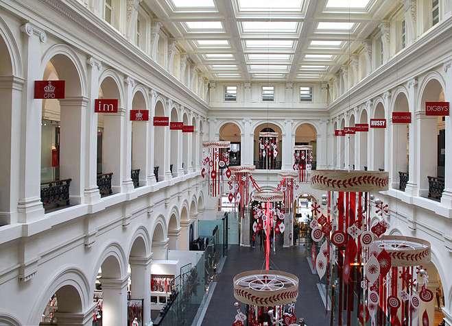 Melbourne's GPO現時為當地著名的購物商場,前身是墨爾本第一間郵政局,因郵局2001年大火後改建而成。商場的名稱GPO,就是General Post Office縮寫。
