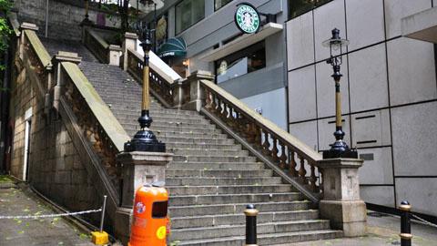 石階旁是一間非常特別的香港復古風格裝修的星巴克,不容錯過!