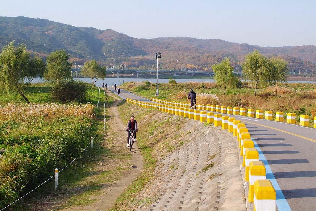 首爾江邊有很多公園,這12座漢江公園相互連接,每個都優美環境再加上寬廣的空間,令人行得寫意又舒適,而位於纛島的漢江公園在某些日子總是特別多人。
