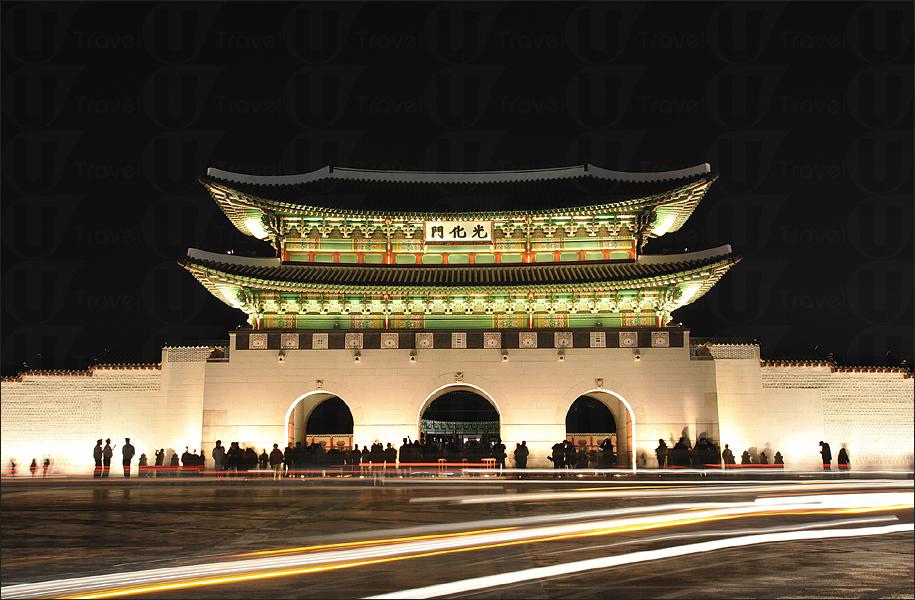 光化門為著名景點景福宮的南門,亦是宮殿的正門。光化門是國王進出用大門,比起其他宮闕正門來說,其規模與格式相對要來得雄偉華麗。不但較傳統的矮門更大規模,用料也是大花崗岩,更顯氣勢。