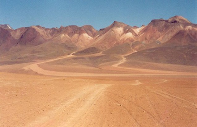 詳細介紹 亞他加馬沙漠(Atacama Desert)位於智利南美洲西海岸中部地區,跟玻利維亞距離不遠。由於地勢有高山阻擋了潮濕的風,氣候上又難以形成雲層,所以令這個沙漠長期乾燥,有「世上最乾燥沙漠」之稱,長達400年沒有下過雨的記錄。