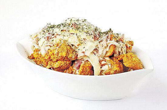 只開了個多月的 Red Chicken,有 10 款炸雞口味選擇,有常見的原味、辣味、蒜香等,更矚目是創新 fusion 口味,像 Carbonara 及蜂蜜檸檬。前者跟足傳統意式 recipe,用忌廉、煙肉及大量洋葱炒成醬汁,配以炸雞,口感非常 creamy。後者的靈感來自香港名物咕嚕肉,大廚希望設計類似的酸甜醬汁,因此用上韓國柚子、蜜糖及鮮檸檬調成又甜又酸的味道。