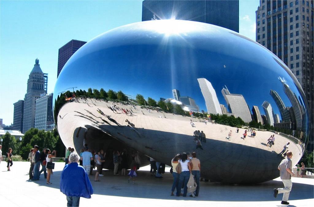 Cloud Gate 位於美國芝加哥千禧公園的 AT&T 廣場內,建造於2004年6月。這一作品長20米,寬13米,高10米,拱底最高處距地面約4米,重100噸。如今作品在美國和國際上都有著非常高的知名度。