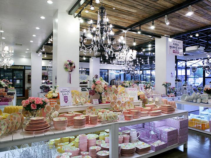 餐廳以外,還有商店約 10 多間,有小店也有大品牌,少不得的當然是普羅旺斯的名物薰衣草。除了有賣充滿南法風情的家俱精品外,還有專賣鮮花的花店和咖啡店等。最特別的是所有商戶每年都會粉飾外牆一次,每季的室內設計也會改變,保持新鮮感。