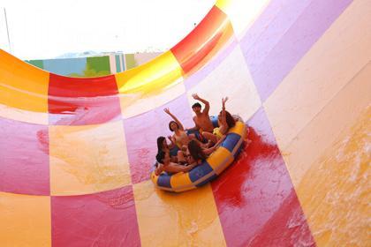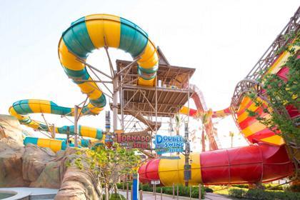 而最愛歡迎的是長 109 米、高 21 米的旋風水滑梯「Tornado Slide」,坐着乘載6人的橡皮艇艇以滑浪飛船式向下衝,最後衝過50米斜度的水管,令橡皮艇以時速過百米滑下喇叭形的漩渦,左右漂移,離心力十足!