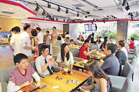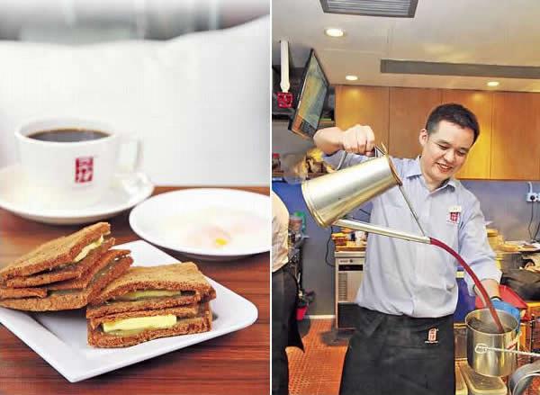 瞄瞄餐牌,除了當地熱賣的多士套餐、喇沙、咖啡、奶茶、咖喱雞麵外,還有香港店限定的海南雞飯、沙律、通粉等。這店雖是特許經營,但為保持水準,這裏的大廚、經理在開店前都在總店受訓。「麵條、麵包特別找本地生產商,按本店要求製造;而咖吔醬、咖喱粉和雞油等,則從當地運來。」行政總裁黎先生說。