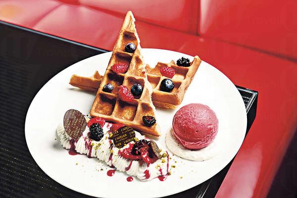 這家二千呎新店坐擁海景,外賣專櫃陳列精緻大小蛋糕、朱古力、牛角酥、macaron禮盒,款式比其他分店多,在商場內顯得很矚目。門口另一邊開放式廚房,店員製作鹹甜口味法式薄餅。驚喜位是新增外賣雪糕專櫃,全球分店中惟獨這店才有。雪糕雪葩暫時有七款,包括朱古力、青蘋果、咖啡、蜜糖、呍呢嗱、紅桑莓、士多啤梨。雪糕在自家工場,由法籍、日籍的糕餅師和廚師每日新鮮製造,不加防腐劑和色素,味道天然傳神。甜品迷一定要試新作窩夫,麵粉、蛋、牛奶全用日本貨,更混入乳酪及呍呢嗱調校蛋漿,烘出來的窩夫既鬆脆,又充滿柔和奶香和蛋香。