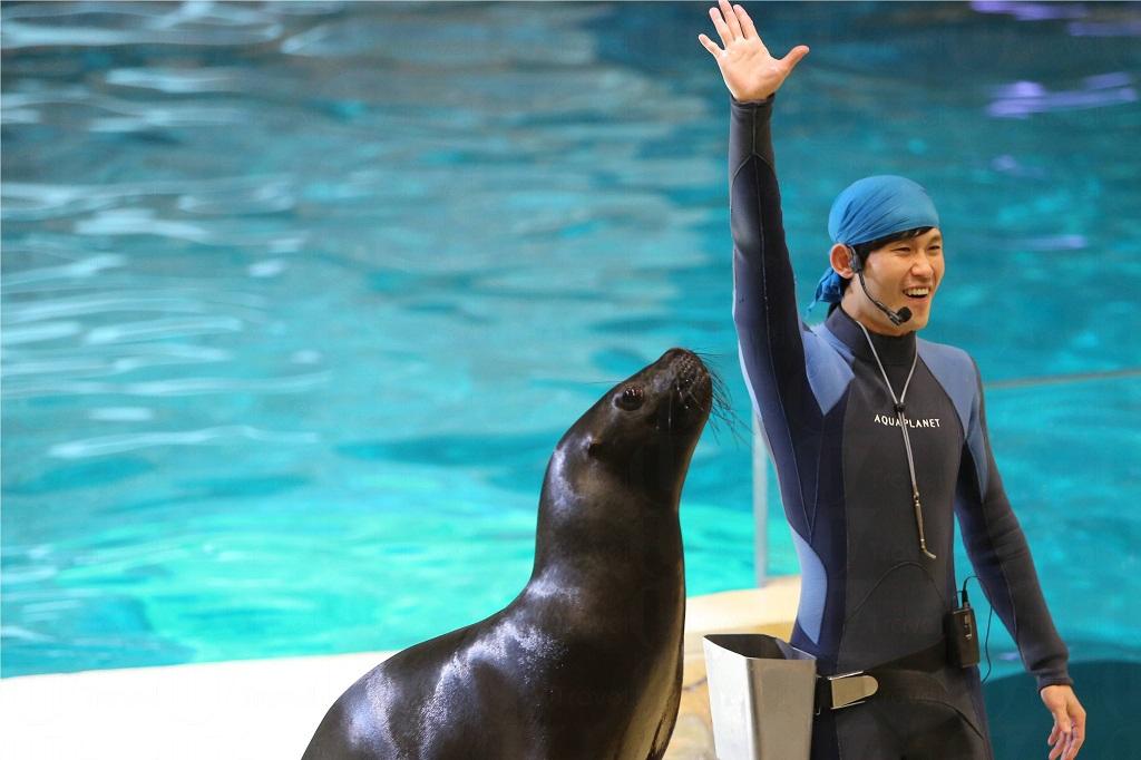 一山Aqua Planet最特別的地方是主水槽內每天會定時上演一齣水上芭蕾舞,由三位潛水人員與水槽內的群魚合舞,表演水中翻騰及旋轉等高難度動作,人魚合一,幾特別~!