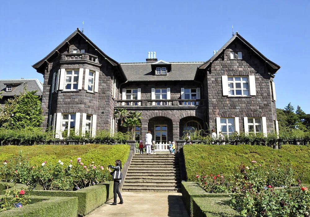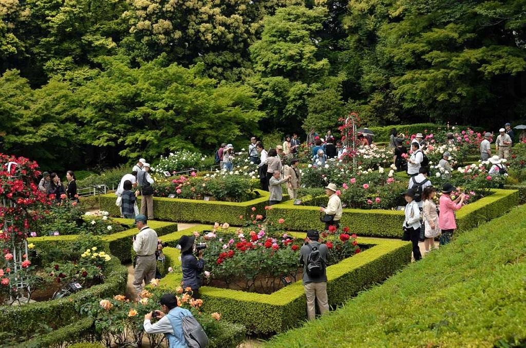 The park includes an old western-style building, a rose garden, and a Japanese-style garden.