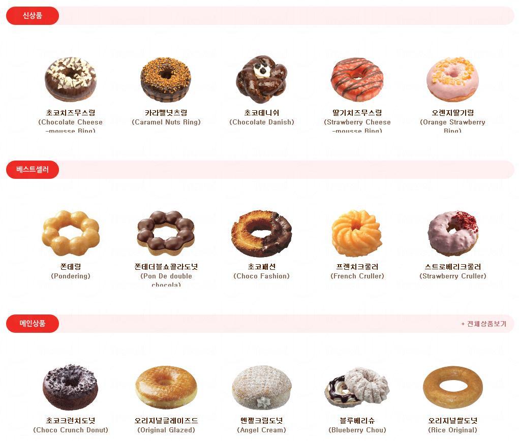 Mister Donut是日本的甜甜圈品牌,於2007年才進駐韓國市場,目前大約有8家分店。Mister Donut甜甜圈的口味約有34種,為迎合韓國人口味,還加入了飲品。Mister Donut以可愛卡通作賣點,每家店都有其吉祥物波提獅在店門前迎接客人,吸引不少遊人跟其拍照留念,還有不少與波提獅杷關的商品出售,吃甜甜圈的同時亦不忘大賣萌。