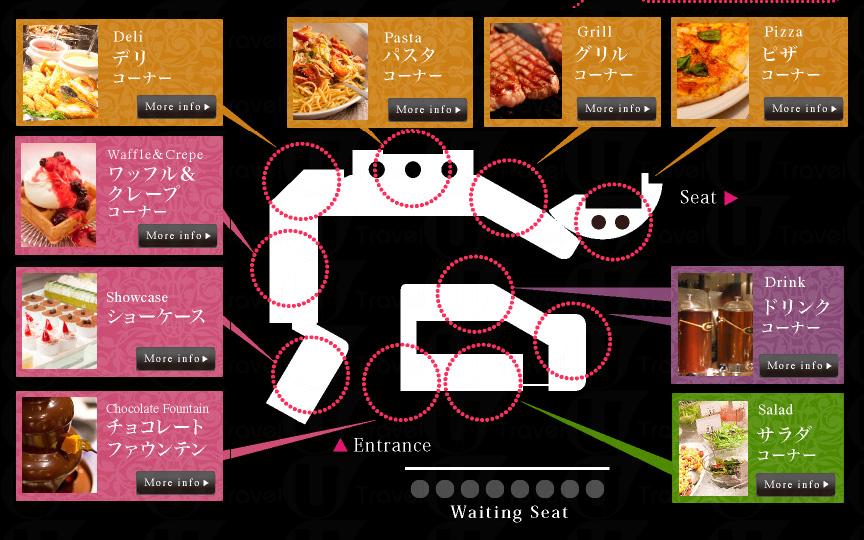 Bittersweets Buffet 裝潢時尚,提供二十多種甜品,包括巧克力噴泉、各種窩夫和法式薄餅,以及一些西式料理 (例如沙律、意大利麵、肉類和薄餅等),讓你盡情享用甜品之餘,也能嘗試任吃店內其他料理,部分料理更是即場烹調。因此在東京具有一定的人氣,不時能看到門外等候的人潮。