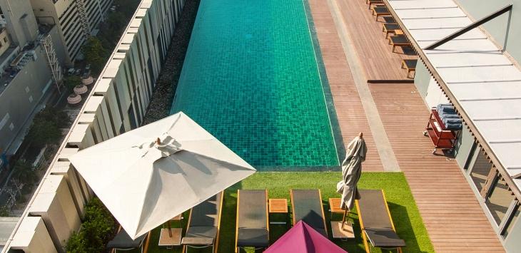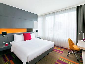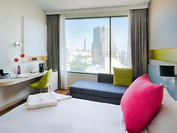 Mercure Bangkok Siam Hotel 是一間 2012年才開幕的酒店,特別在於這是一棟建築包含兩間酒店,一間是Ibis Hotel,屬於廉價住宿,而一間則是Mercure Hotel,為四星級酒店。 酒店旁邊是BTS National Stadium站,乘搭地鐵到其他景點亦十分方便。而且周邊的景點也很多,當中包括曼谷藝術文化中心、MBK 購物中心、杜莎夫人蠟像館等,而且距離機場也只不過 30 分鐘的車程。 酒店外的景觀開揚,沒有其他的樓宇遮掩,設有游泳池,而周圍亦有不少小吃攤販和便利店,生活機能可謂相當不錯。到了晚上,酒店的頂樓更能看到曼谷的夜景。酒店房間乾淨舒適,簡約溫馨的路線。每人每晚約 $300 就可以住在位於商圈的酒店,屬於性價比頗高的酒店。