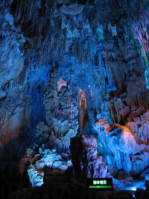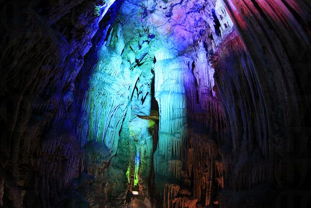 蘆笛岩是位於桂林的鐘乳石洞,洞內有各式各樣形狀奇特的鐘乳石,配上湖水和各種顏色的燈光,給人一種奇幻的感覺。