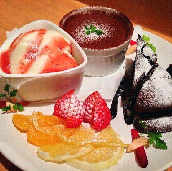例如店裡的甜品套餐,包含一件巧克力蛋糕、一球香草味雪糕、一小杯提拉米蘇,還有新鮮雜果伴碟,一次過滿足你3個願望,只需600日圓(約HK$40)就有交易,非常抵食。
