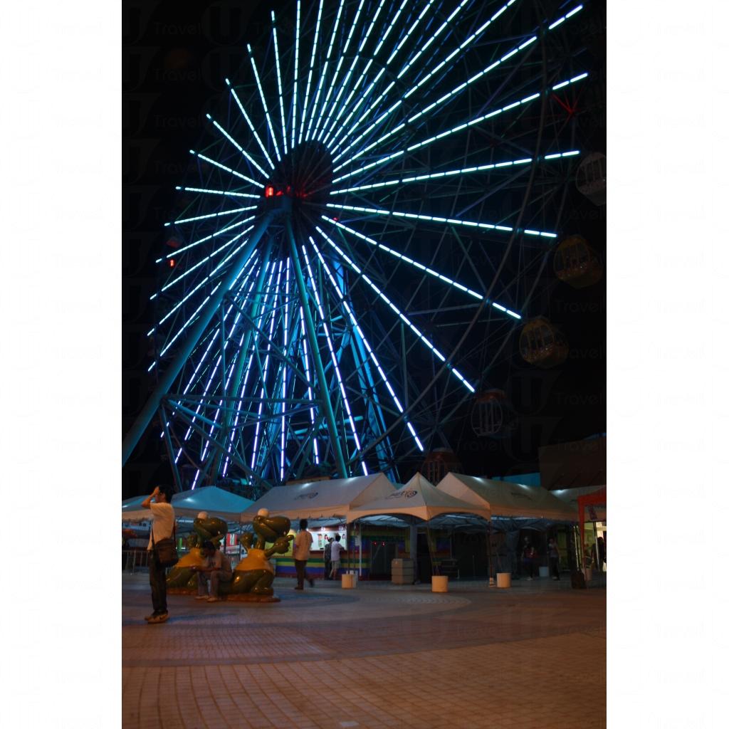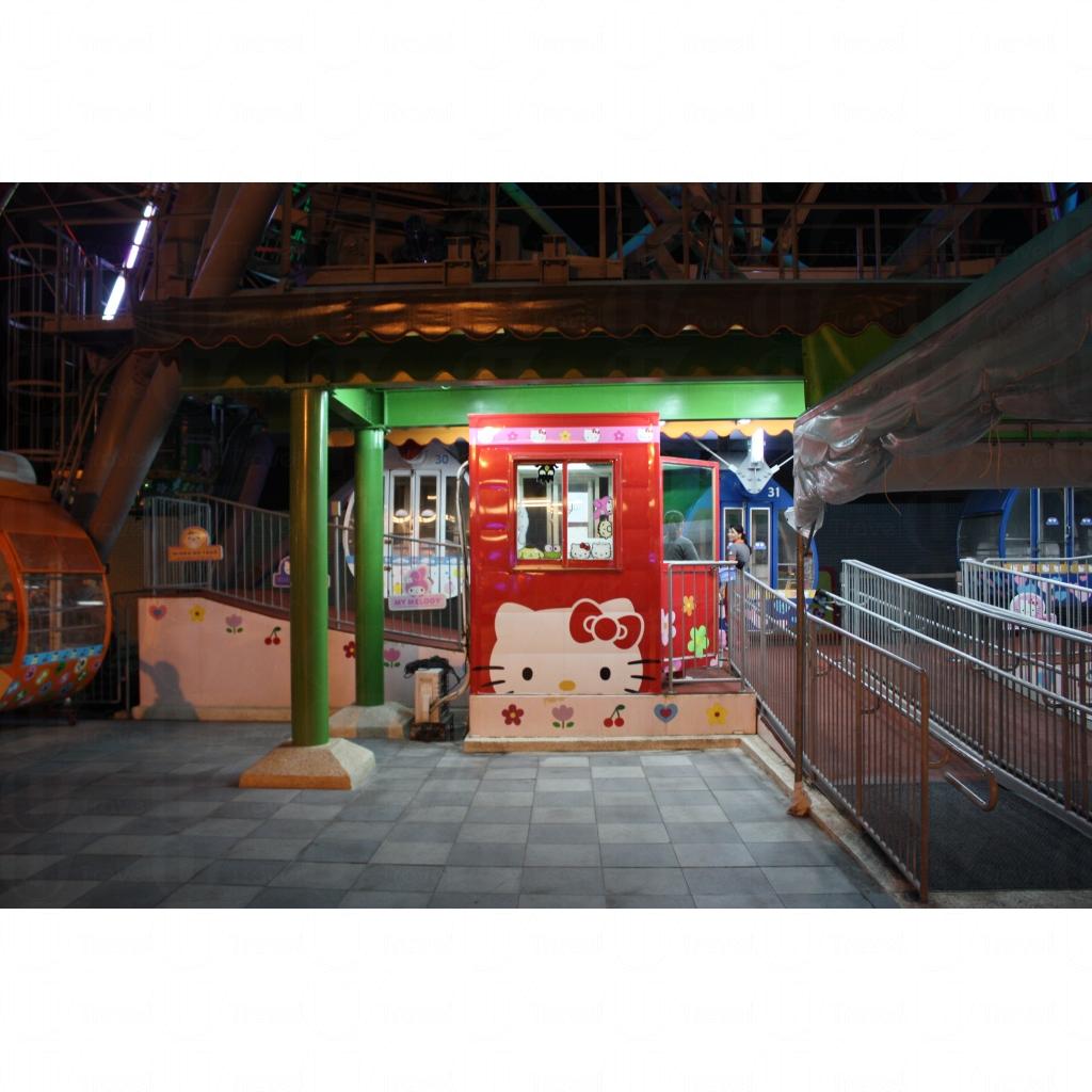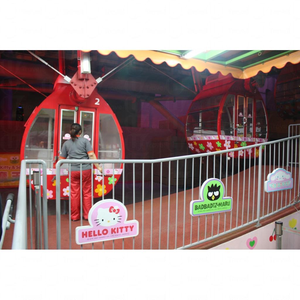 這個摩天輪還有兩座透明車廂,讓我們可以感受漫步雲端,這種體驗真夠刺激!還有Kitty 摩天輪只有藍色和紅色,那次很幸運,坐在一卡有Kitty 抱枕的車廂,聽說只有一卡車廂才會有,那個抱枕很可愛呢!