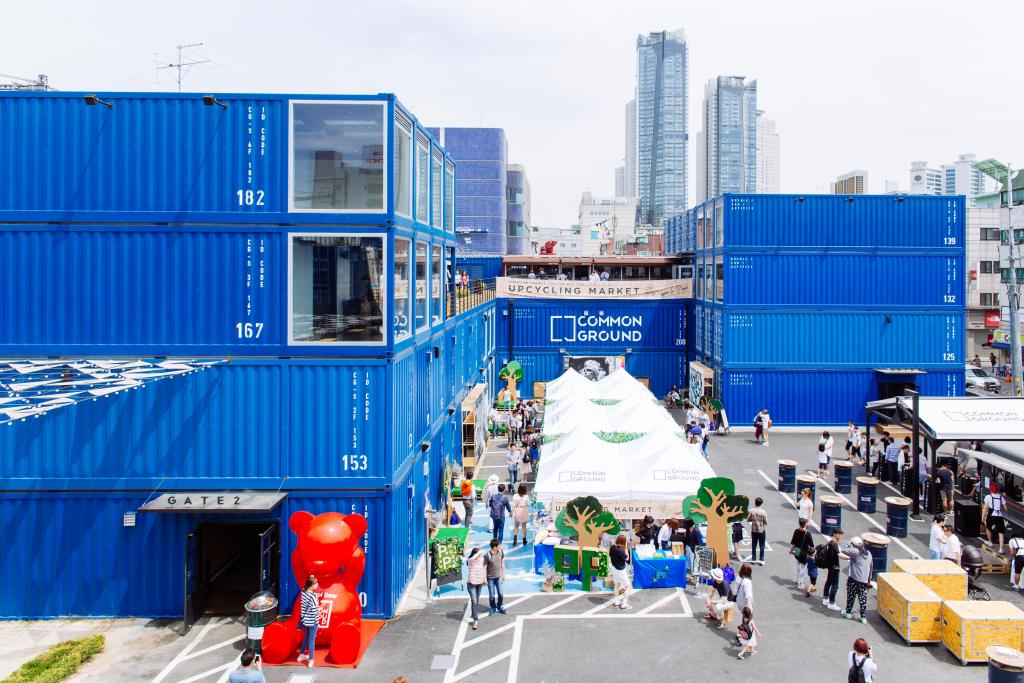 Common Ground是用多個藍色貨櫃組合而成的大型購物商場,看起來就是一個排列規律的靛藍貨櫃區域,顯眼而獨特,面積為全球最大的貨櫃購物中心。樓高三層,分為左、右兩棟大樓,1、2樓為潮流生活區,可以買到各種潮流服飾各生活雜貨,3樓則為美食廣場,這裡還有極具人氣的彩虹蛋糕,可以血拼過後,來這裡稍作休息和補充能量。