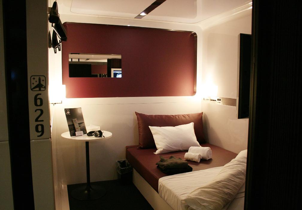 其客房設計貫徹品牌的風格,以仿照飛機頭等艙的獨立而舒適概念設計,讓客人可以低價享受私人的休息空間,比起一般膠囊酒店更優質。