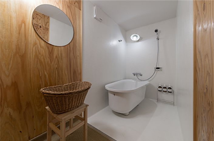 KYOTO ART HOSTEL kumagusuku的另一特點在於其浴室,有別於一般的旅館只會提供淋浴服務,這裡的浴室設有浴缸,設計典雅而有美感,空間寬敞。即使是住在旅館,住客也能享有非一般的享受,好好放鬆心靈。