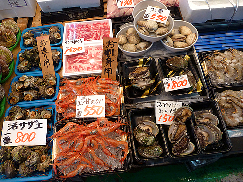 此外這裡除了週日,每天一到下午2時起就會舉行海鮮拍賣,客人紛紛出價,攤販的叫賣聲此起彼落,非常有氣氛,並能體驗到日本獨有的漁市場文化。